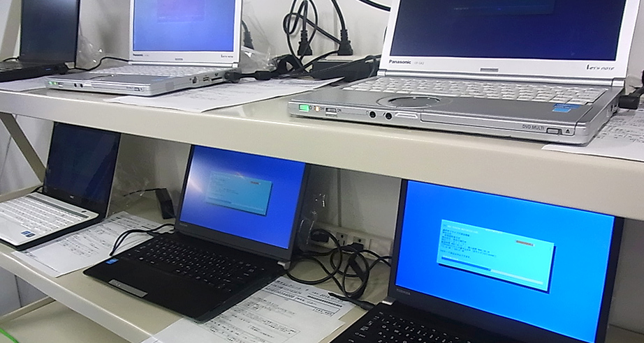 大量導入、大量案件もサービスの対象にしているほか、キッティング済み機器の一括納品や各拠点への分割納品にも対応が可能です。また、新PCの納品時に旧PCを回収したり、回収したPCからデータをイレースしたりする作業なども受託しております。